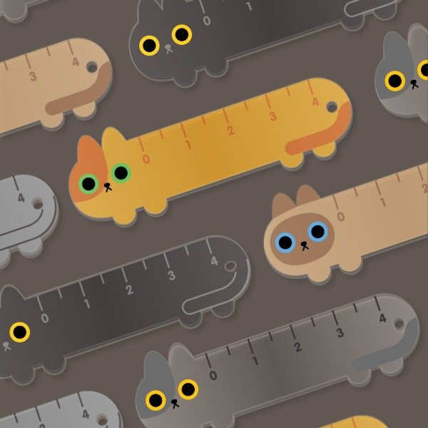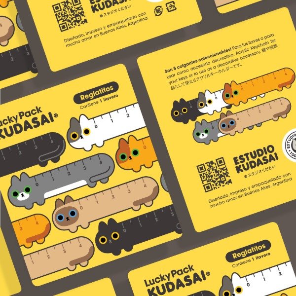 Una colección de 5 llaveros sorpresa, en forma de reglas de gatitos!