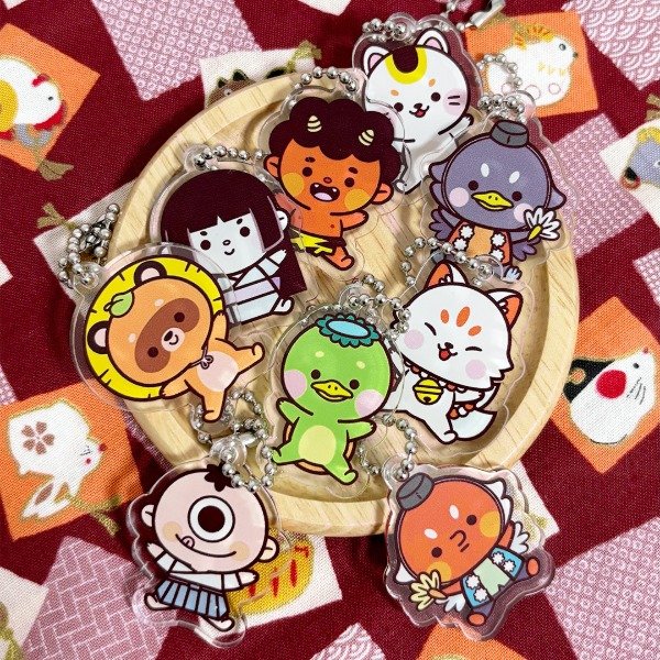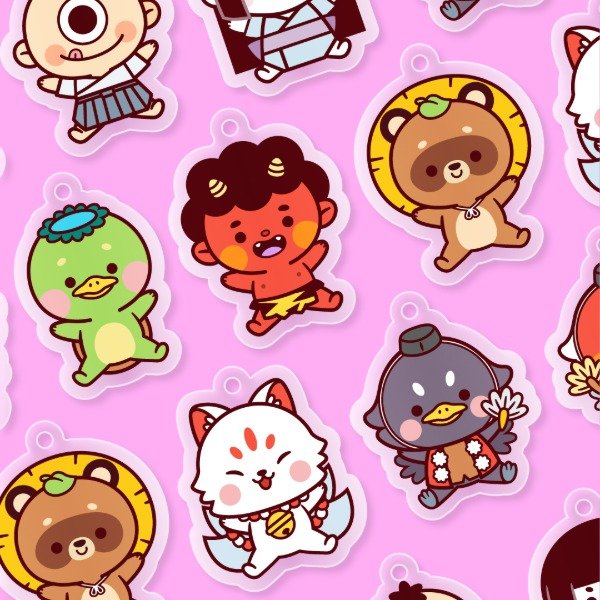Una colección de 9 llaveros sorpresa, en forma de criaturas del folklore japonés.
