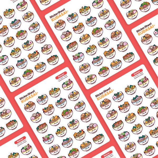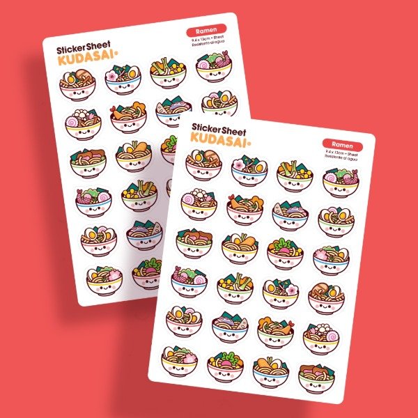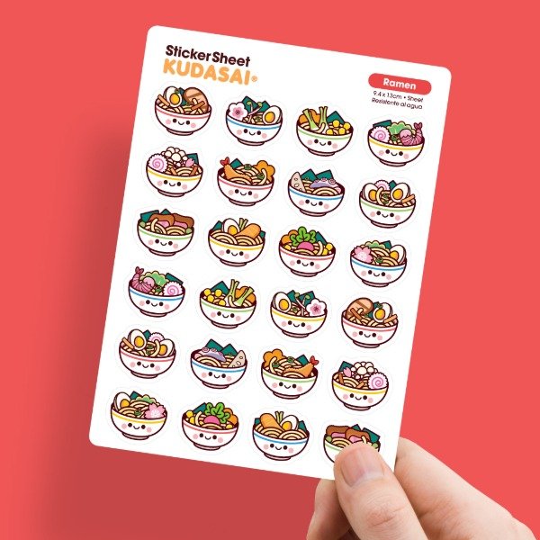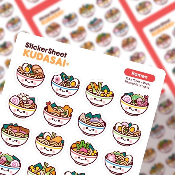 Plancha de 24 stickers troquelados de ramen repletos de sabor!.